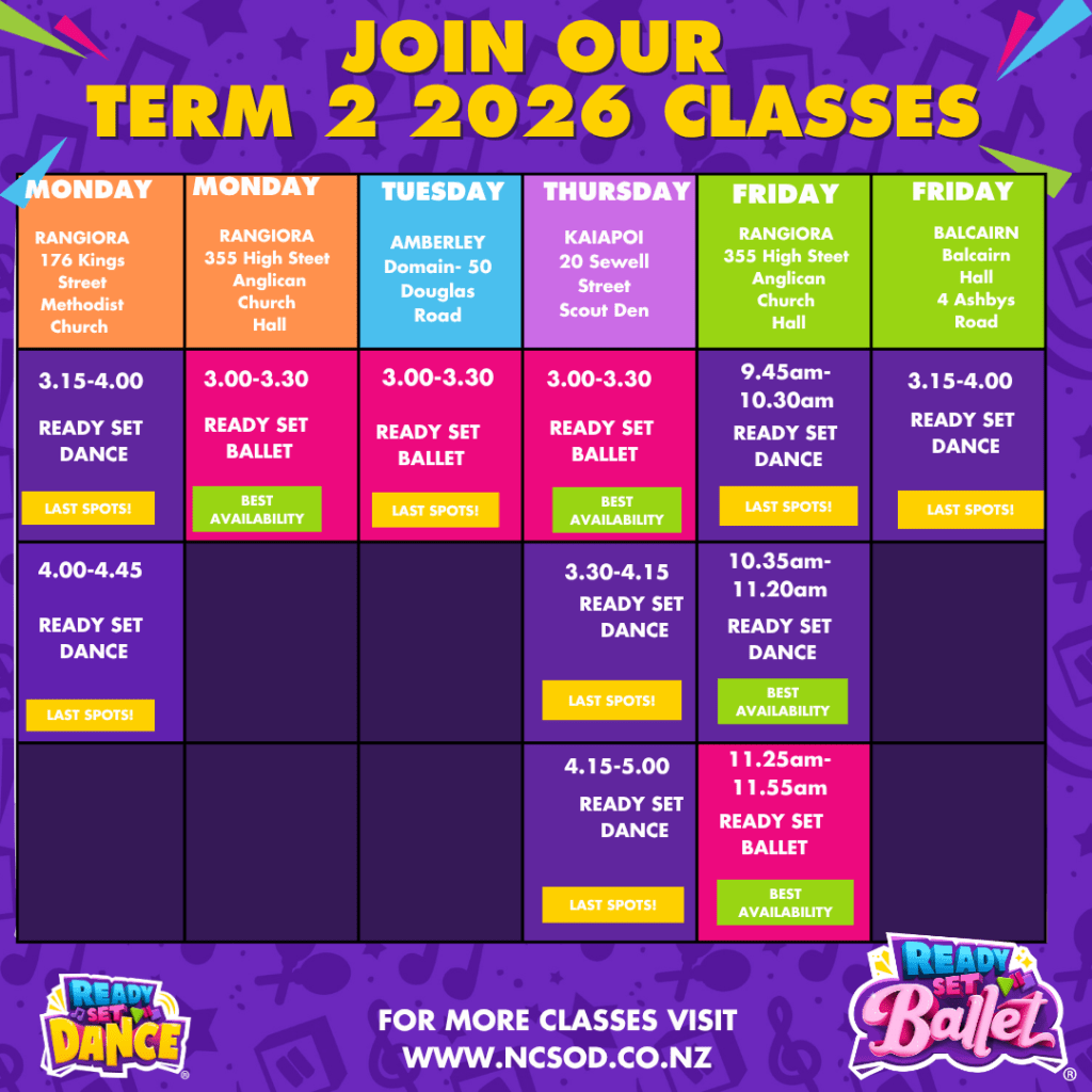 North Canterbury School of Dance is Proud to Be the official location of Ready Set Dance In Amberley, Kaiapoi, Rangiora and Balcairn!